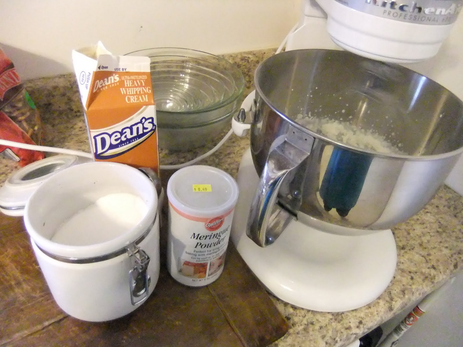 Beat the cream on high and gradually sprinkle in the meringue powder. When it starts to peak, gradually add in the sugar. Continue beating on high for about 4-5 minutes and you're done! Easy peasy, lemon squeezey!
